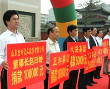 在6月1日廣饒縣開(kāi)展的“慈心一日捐”活動(dòng)中,公司董事長(zhǎng)趙曰嶺個(gè)人向廣饒縣慈善總會(huì)捐款10萬(wàn)元。近幾年來(lái),在企業(yè)迅速發(fā)展的同時(shí),趙總不忘回報(bào)社會(huì),積極為地方經(jīng)濟(jì)發(fā)展和社會(huì)慈善事業(yè)捐款捐物,幫助附近村莊修路、打井,至今已累計(jì)捐款500多萬(wàn)元,樹(shù)立了一個(gè)勇于承擔(dān)社會(huì)責(zé)任企業(yè)家的良好形象。圖為企業(yè)發(fā)展部趙曰森經(jīng)理代表趙董事長(zhǎng)出席捐款儀式。