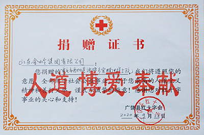 2020年9月24日,廣饒縣紅十字會(huì)頒發(fā)證書,對(duì)公司積極響應(yīng)市委、市政府號(hào)召,向重慶市酉陽(yáng)縣浪坪鄉(xiāng)官楠村捐款的行動(dòng)表示感謝。在捐贈(zèng)證書上,廣饒縣紅十字會(huì)表示:“您捐贈(zèng)的重慶市酉陽(yáng)縣浪坪鄉(xiāng)官楠村5萬(wàn)元,我們將遵照您的意愿,全部用于社會(huì)公益事業(yè)。對(duì)于您崇高的人道主義精神和善行義舉,謹(jǐn)表示誠(chéng)摯的敬意!感謝您對(duì)紅十字事業(yè)的關(guān)心和支持!” 扶貧酉陽(yáng),是黨中央、國(guó)務(wù)院和山東省委、省政府交給東營(yíng)的一項(xiàng)重大任務(wù),是我們義不容辭的責(zé)任。沉甸甸的捐贈(zèng)證書,是對(duì)公司積極承擔(dān)社會(huì)責(zé)任的充分肯定。在多年來(lái)的發(fā)展歷程中,公司始終不忘創(chuàng)業(yè)初心,牢記發(fā)展使命,用愛(ài)心回饋社會(huì),積極參與愛(ài)老敬老、捐資助學(xué)、扶危濟(jì)困、慈善賑災(zāi)、新農(nóng)村建設(shè)、抗擊臺(tái)風(fēng)等公益事業(yè),為地方各項(xiàng)社會(huì)事業(yè)發(fā)展做出了突出貢獻(xiàn)。