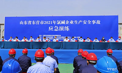 2021年6月2日,東營(yíng)市2021年氯堿企業(yè)生產(chǎn)安全事故應(yīng)急演練暨廣饒縣第20個(gè)全國(guó)安全生產(chǎn)月活動(dòng)啟動(dòng)儀式在大王公司舉行。東營(yíng)市副市長(zhǎng)、市公安局局長(zhǎng)戚思宇,市政府副秘書長(zhǎng)、市應(yīng)急管理局局長(zhǎng)、市市域治理運(yùn)行管理中心主任劉良范,廣饒縣委常委、常務(wù)副縣長(zhǎng)張江圣,副縣長(zhǎng)、縣公安局局長(zhǎng)楊秀林,大王鎮(zhèn)黨委副書記、鎮(zhèn)長(zhǎng)李洪剛,大王鎮(zhèn)黨委統(tǒng)戰(zhàn)委員、應(yīng)急管理局局長(zhǎng)韓林,發(fā)展改革、工業(yè)和信息化、生態(tài)環(huán)境、交通運(yùn)輸、衛(wèi)生健康、市場(chǎng)監(jiān)管、氣象、消防等部門單位負(fù)責(zé)同志,金嶺集團(tuán)董事長(zhǎng)趙曰嶺、總裁趙棟及公司相關(guān)人員參加了演練活動(dòng)。