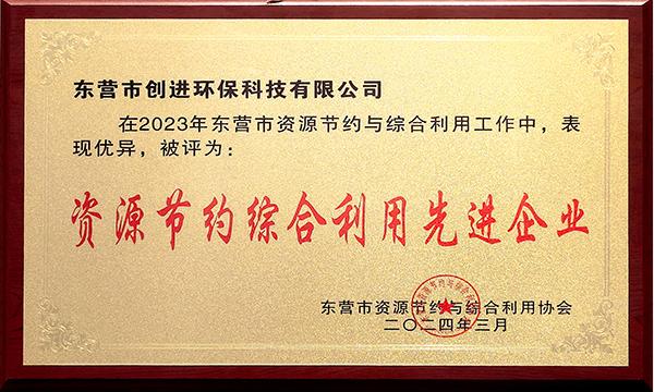 東營(yíng)市創(chuàng)進(jìn)環(huán)保科技有限公司被評(píng)為“資源節(jié)約綜合利用先進(jìn)企業(yè)”