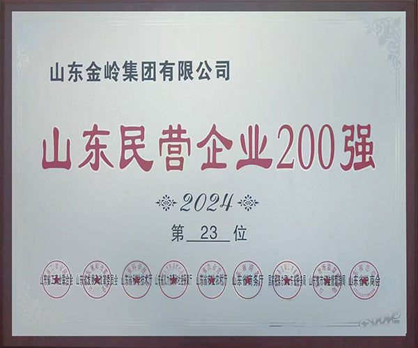 2024年7月,2024山東民營企業(yè)百強系列榜單發(fā)布會在濱州召開,山東省工商業(yè)聯(lián)合會、山東省發(fā)展和改革委員會、山東省科學(xué)技術(shù)廳等8個單位聯(lián)合授予我公司“2024山東民營企業(yè)200強”“2024山東民營企業(yè)吸納就業(yè)100強”兩項榮譽稱號。