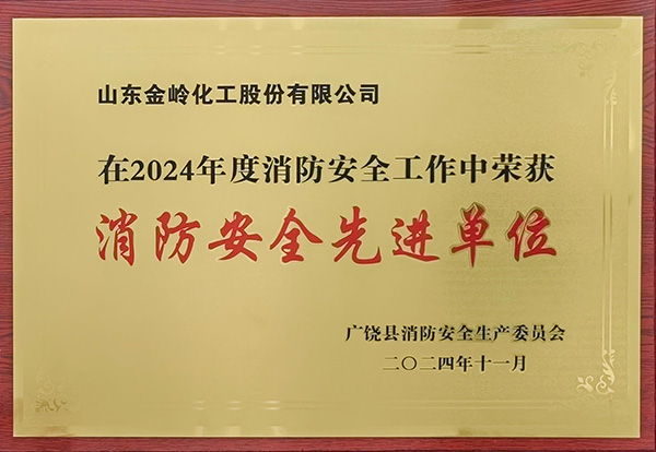 2025年2月26日,為表彰公司2024年度在消防安全宣傳、聯(lián)合消防演練、區(qū)域消防安全方面做出的突出貢獻(xiàn),山東金嶺化工股份有限公司被廣饒縣消防安全生產(chǎn)委員會評為“消防安全先進(jìn)單位”。