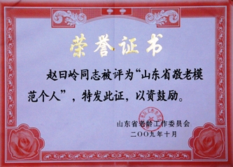 近日,公司董事長趙曰嶺被山東省老齡委評為“山東省敬老模范個人”,此次評選是經過鎮(zhèn)、縣、市、省等各部門層層審核后確定的,我縣僅有趙總一人獲此殊榮。