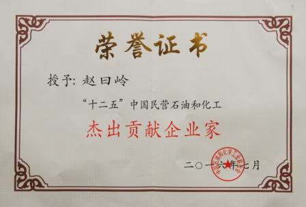 7月2日,2016中國石油和化工民營企業(yè)發(fā)展大會在北京召開。會議由中國石油和化學工業(yè)聯(lián)合會主辦,十屆人大常委會副委員長顧秀蓮到會并致辭。中國石油和化學工業(yè)聯(lián)合會會長李壽生、原會長李勇武出席會議。大會由中國石油和化學工業(yè)聯(lián)合會副會長兼秘書長趙俊貴主持,副會長傅向升宣讀關于表彰《“十二五”中國石油和化工優(yōu)秀民營企業(yè)、“十二五”中國石油和化工優(yōu)秀民營企業(yè)家的決定》。在會議上,我公司被授予“十二五”中國石油和化工優(yōu)秀民營企業(yè),董事長趙曰嶺被評為“十二五”中國民營石油和化工杰出貢獻企業(yè)家,受到大會隆重表彰。