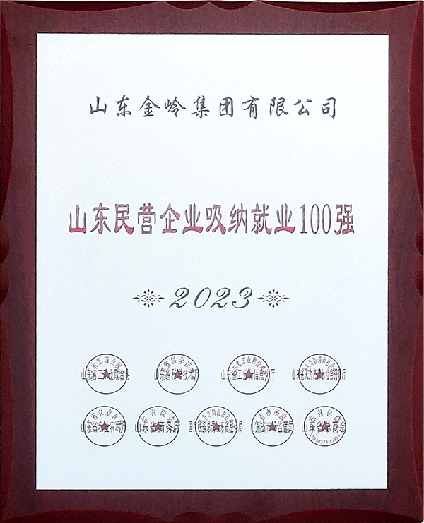 2023年8月,由山東省工商業(yè)聯(lián)合會、山東省科學(xué)技術(shù)廳、山東省工業(yè)和信息化廳等8個單位聯(lián)合組織舉辦的2023山東民營企業(yè)100強(qiáng)系列榜單發(fā)布會在德州召開,會上發(fā)布2023年山東民營企業(yè)100強(qiáng)系列榜單,金嶺集團(tuán)位列 “2023山東民營企業(yè)100強(qiáng)”第22位,并被授予“2023山東民營企業(yè)吸納就業(yè)100強(qiáng)”榮譽(yù)稱號。