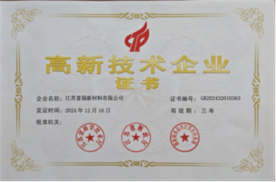 2025年2月18日,經江蘇省科學技術廳、江蘇省財政廳、國家稅務總局江蘇省稅務局層層嚴格審核、多輪評估,江蘇富強新材料有限公司被評為高新技術企業(yè)。