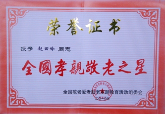 近日,公司董事長趙曰嶺被全國老齡辦、民政部、教育部、國家廣電總局、共青團中央、全國婦聯(lián)、中國關工委評為“全國孝親敬老之星”。