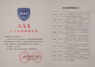 近日,公司被山東省企業(yè)聯(lián)合會(huì)、山東省企業(yè)信譽(yù)評(píng)價(jià)工作委員會(huì)評(píng)為AAA級(jí)信譽(yù)企業(yè),公司董事長(zhǎng)趙曰嶺被授予“2013年度山東省誠(chéng)信企業(yè)經(jīng)營(yíng)者”榮譽(yù)稱號(hào)。多年來(lái),公司始終堅(jiān)持誠(chéng)實(shí)守信的經(jīng)營(yíng)理念,視誠(chéng)信為企業(yè)的發(fā)展生存之本,贏得了良好的社會(huì)信譽(yù),榮獲全國(guó)行業(yè)誠(chéng)信經(jīng)營(yíng)示范單位、山東省誠(chéng)信企業(yè)、省級(jí)守合同重信用企業(yè)、山東省用戶滿意企業(yè)、東營(yíng)市守誠(chéng)信重質(zhì)量先進(jìn)企業(yè)、東營(yíng)市人力資源社會(huì)保障誠(chéng)信示范企業(yè)等多項(xiàng)榮譽(yù)稱號(hào)。